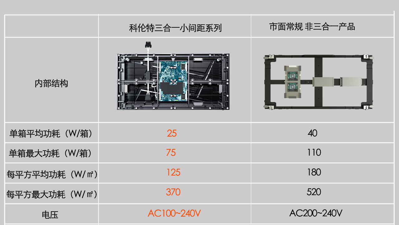 以G22恒峰LX-lite三合一小间距P1.2为例,其单箱平均功耗仅仅25W,比市面上其他非三合一的产品功耗降低37.5%,并获得整机3C和节能认证。以一块100平方的屏幕每天开5小时计算,G22恒峰LX-lite三合一小间距将比市面上非三合一产品,一年节约电费约1.4万元。